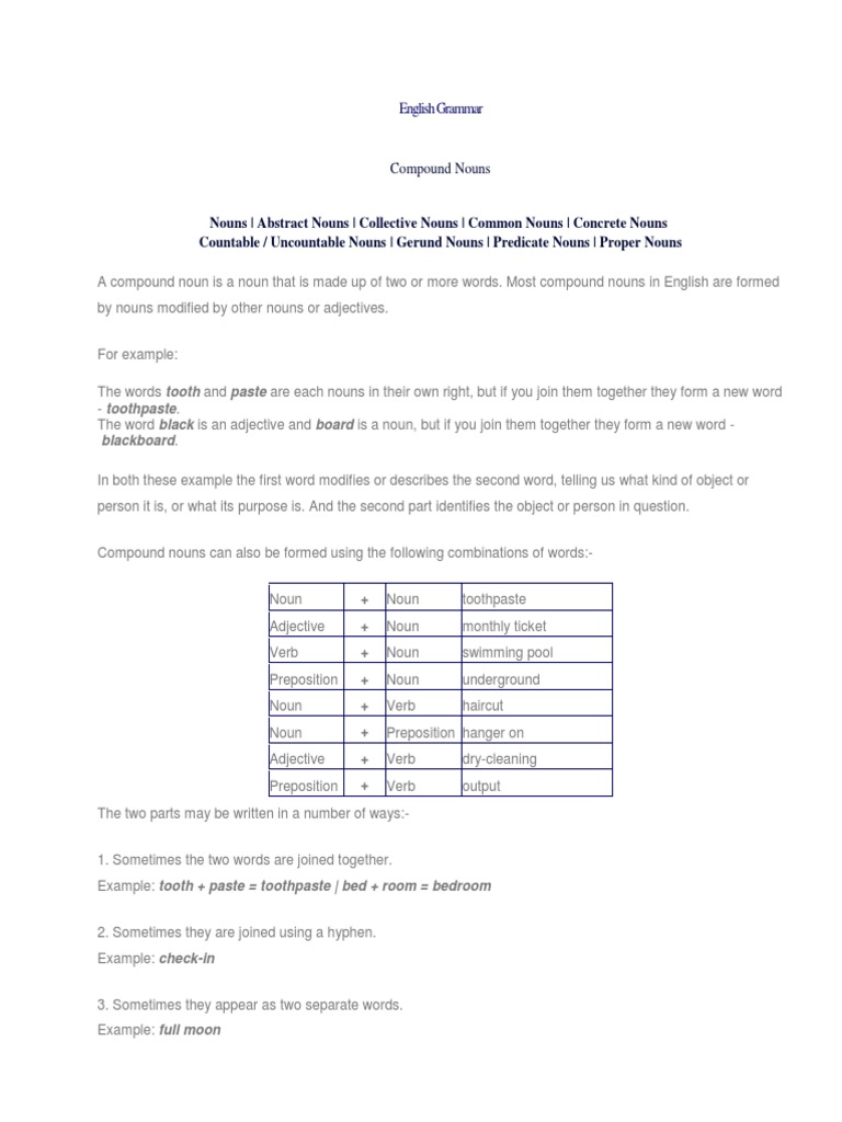 Compound nouns are words for people, animals, places, things, or ideas, made up of two or more words gerund noun examples. Compound words are formed when two or more words are joined together to create a new word that has an entirely new meaning.